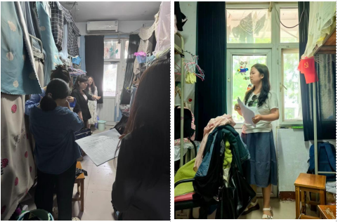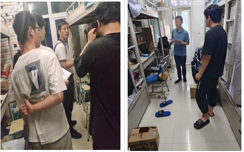 此次活动采用全面排查方式确保无遗漏。学院党委副书记熊瑛带队,各年级辅导及班主任密切配合,深入宿舍对标检查标准逐一排查相关隐患问题。对检查走访中存在卫生及隐患问题的宿舍,现场提出整改要求及整改期限。同时在学生宿舍张贴《学生宿舍消防安全“十禁止”》,号召全