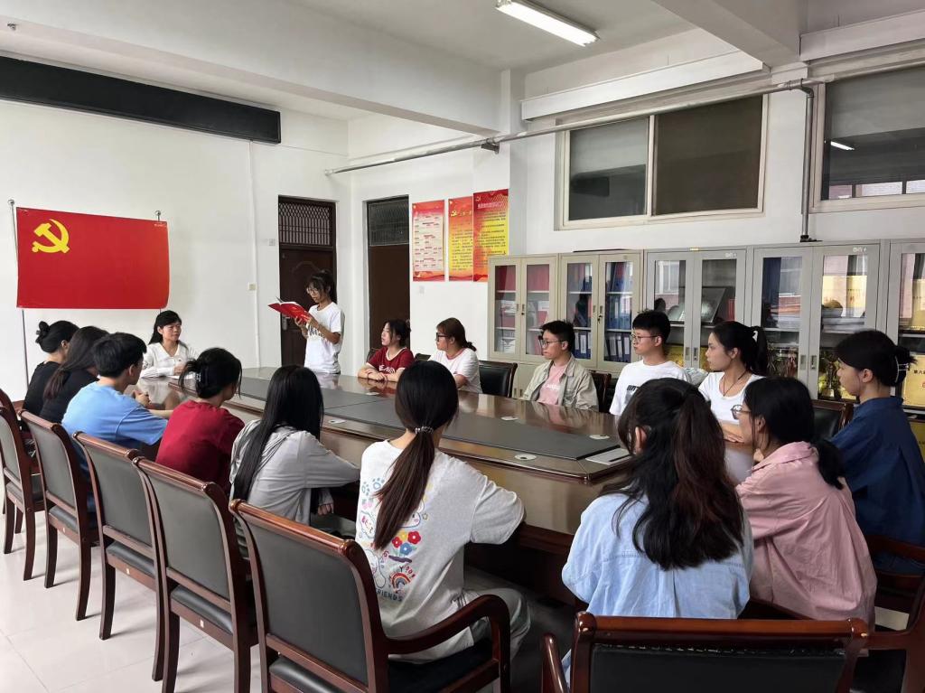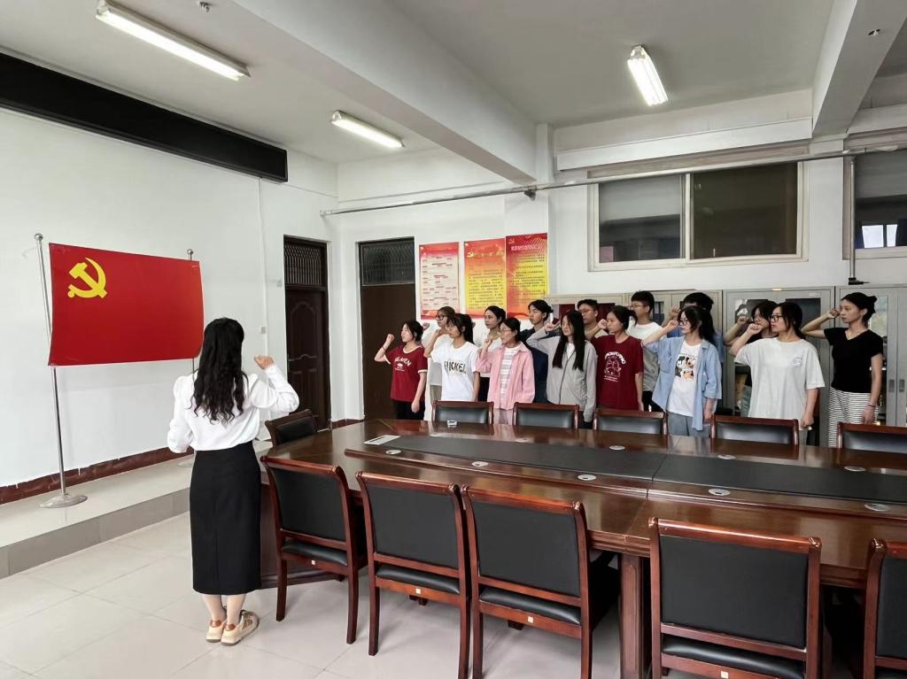 一场宣誓、一次洗礼。通过入党宣誓活动,让新党员们深刻感受到了党员的责任、使命与义务。15名预备党员面对鲜红的党旗,紧握右拳庄严宣誓,发出为共产主义奋斗终身的铮铮誓言。2021级本科生李阔阔作为新党员代表发言,她表示自己在党组织的关心和激励下,从一名入党积极分子成长为一名预备党员,很荣幸被党组织接纳,今后会从点滴做起,发挥好党员先锋模范作用,以实际行动践行入党誓词,展现党员风采。