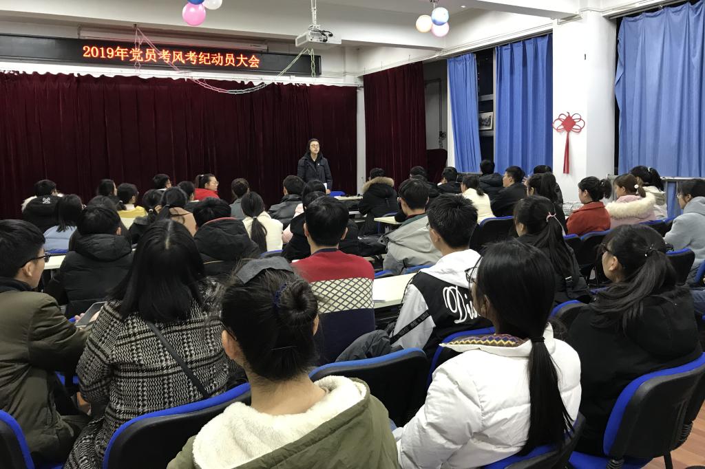 为进一步加强学生党员干部诚信教育工作,顺利完成完成期末考试。2019年12月17日晚,材料与化工学院全体学生党支部组织在校学生党员、入党积极分子召开党员考风考纪教育动员大会,应化专业学生党支部书记洪潇主持会议并讲话,材科专业学生党支部书记艾文英、兼职辅导员马向利老师、武蓉慧老师参会。