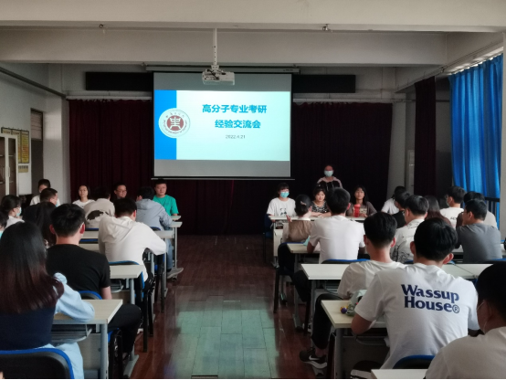 2022年4月21日,永利官网在2号实验楼543召开高分子材料与工程专业考研经验交流会。参加人员有高分子19级学生和18级考研已录取学生王玉瑶、黄婉玉、张仁聪等8人,交流会由高分子192班主任曹凤仪主持。