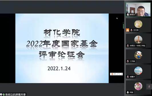 为进一步提升永利官网2022年度国家自然科学基金项目的申报质量,材料与化工学院于1月24日举行2022年度国家自然科学基金评审论证会。此次评审会邀请了中国科学院兰州化学物理研究所研究员、第十三批“国家海外高层次人才引进计划”青年项目(2017)、江苏省“双创人才”、国家自然科学基金评审专家何林研究员进行指导,科技处董燕副处长出席会议,会议由材化学院焦明立副院长主持,应用化学系相关方向教师参加。此次评审会通过腾讯会议线上方式进行。