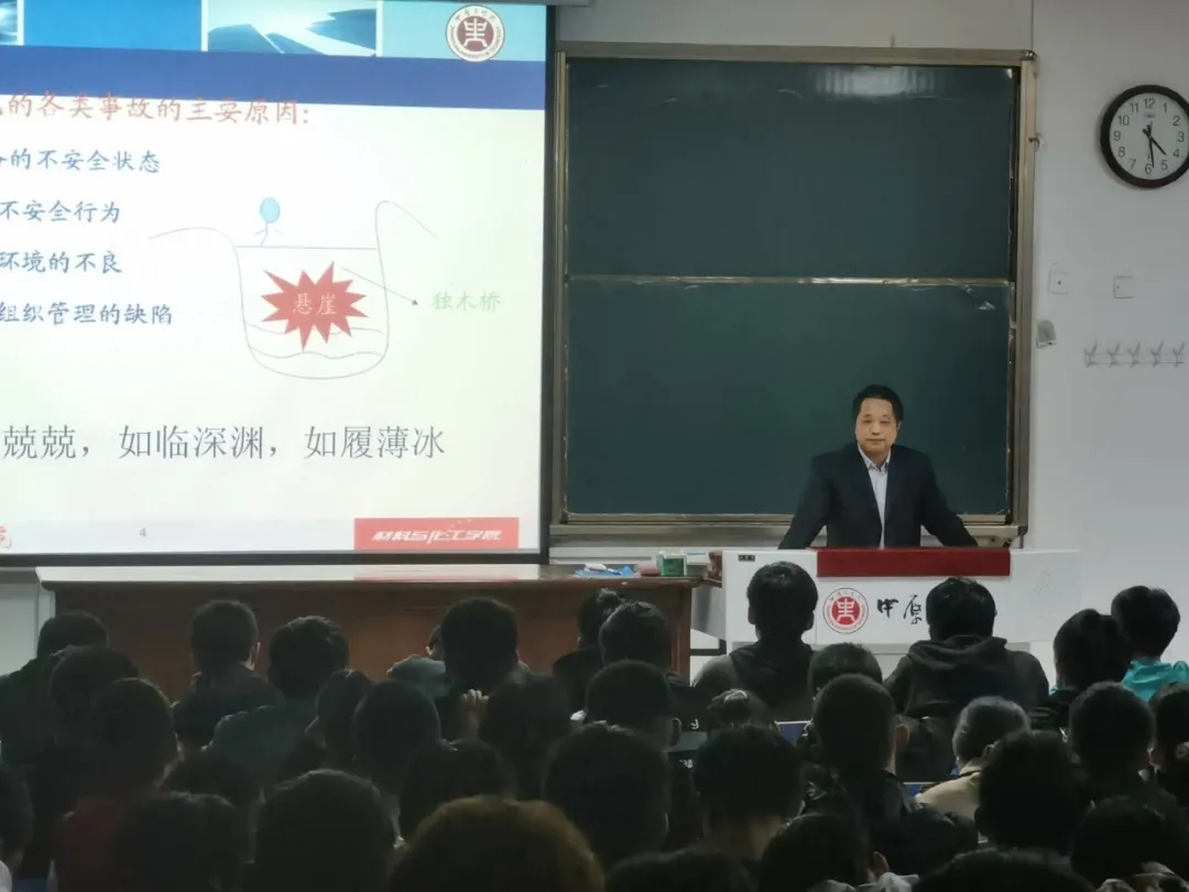 “安全工作重于泰山。”为全力做好新生的安全教育工作,营造安全、文明、和谐的校园氛围,2020年10月13日下午,材料与化工学院在四号教学楼101教室对新生进行实验室安全教育,2020级全体新生参加了培训。培训会由学院副书记周华强主持,张留学副院长做培训报告。