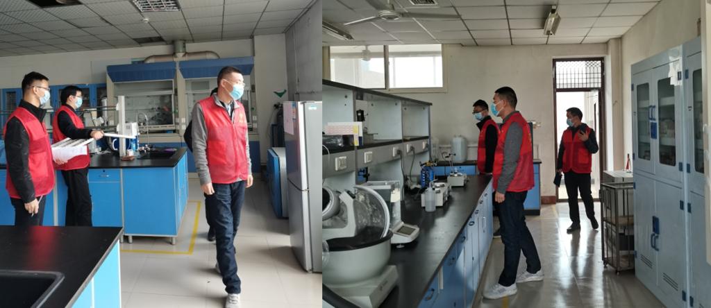 2022113日上午,焦明立副院长带领黄权教授、李鹏宇老师、乔辉杰老师和贾少培老师到现场对学院各个实验室进行安全检查。王志新主任、刘英主任、李英华主任和刘永刚老师以线上视频的方式参与安全检查。