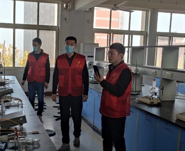 材料与化工学院根据学校要求,2022年11月24日上午,学院副院长焦明立带领黄权教授、李鹏宇老师、乔辉杰老师和王卓老师到现场对学院各个实验室进行安全检查。王志新主任、刘英主任、李英华主任和刘永刚老师以线上视频的方式参与安全检查。