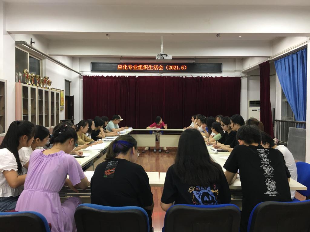 6月8日,应用化学专业课程思政党支部在2号楼510召开支部组织生活会,应用化专业课程思政党支部应到会8人,实到8人,会议由党支部书记贾旭主持。