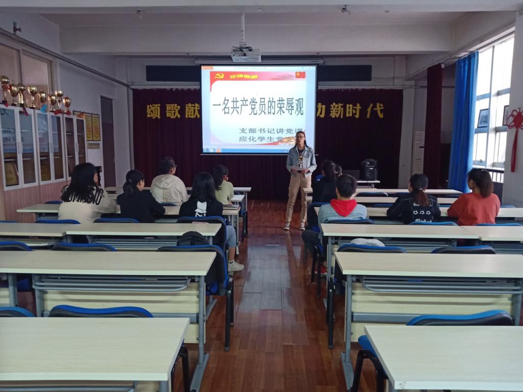 应用化学专业学生党支部书记洪潇以“一名共产党员的荣辱观”为本次教育专题,提醒支部成员要加强马克思主义基本理论修养、深入学习党章,树立自己的社会主义荣辱观。